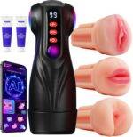 Male Masturbator Sex Toys for Men – 3 Sleeves AI Sync Pocket Pussy Penis Pump with 9 Sucking & 9 Vibrating, APP Adult Toys Mens Sex Toy, Colorful Lighting Stroker Machine Erotic Massage Kits